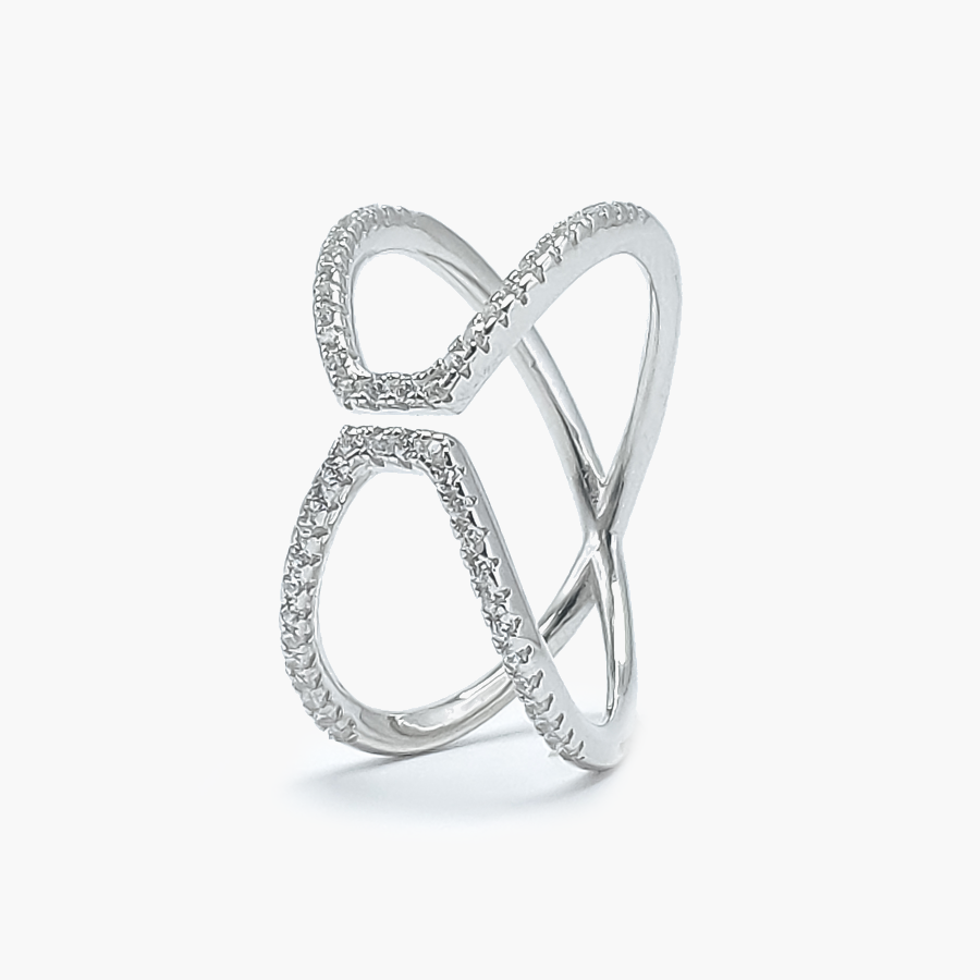Anel confeccionado em prata de lei regulável com aplicação de zircônias.