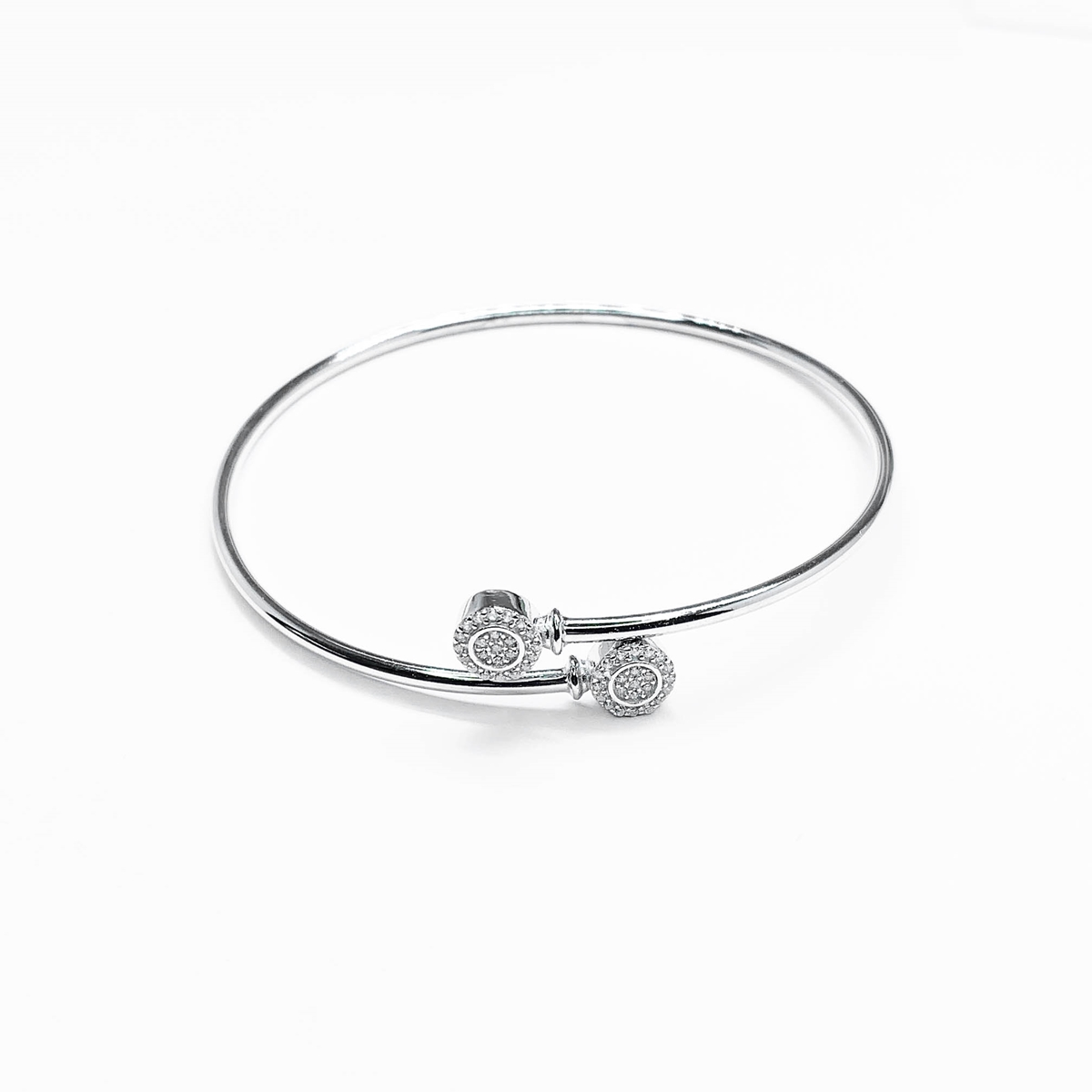 Bracelete Ajustável de Prata e 2 Pontas de Zircônia