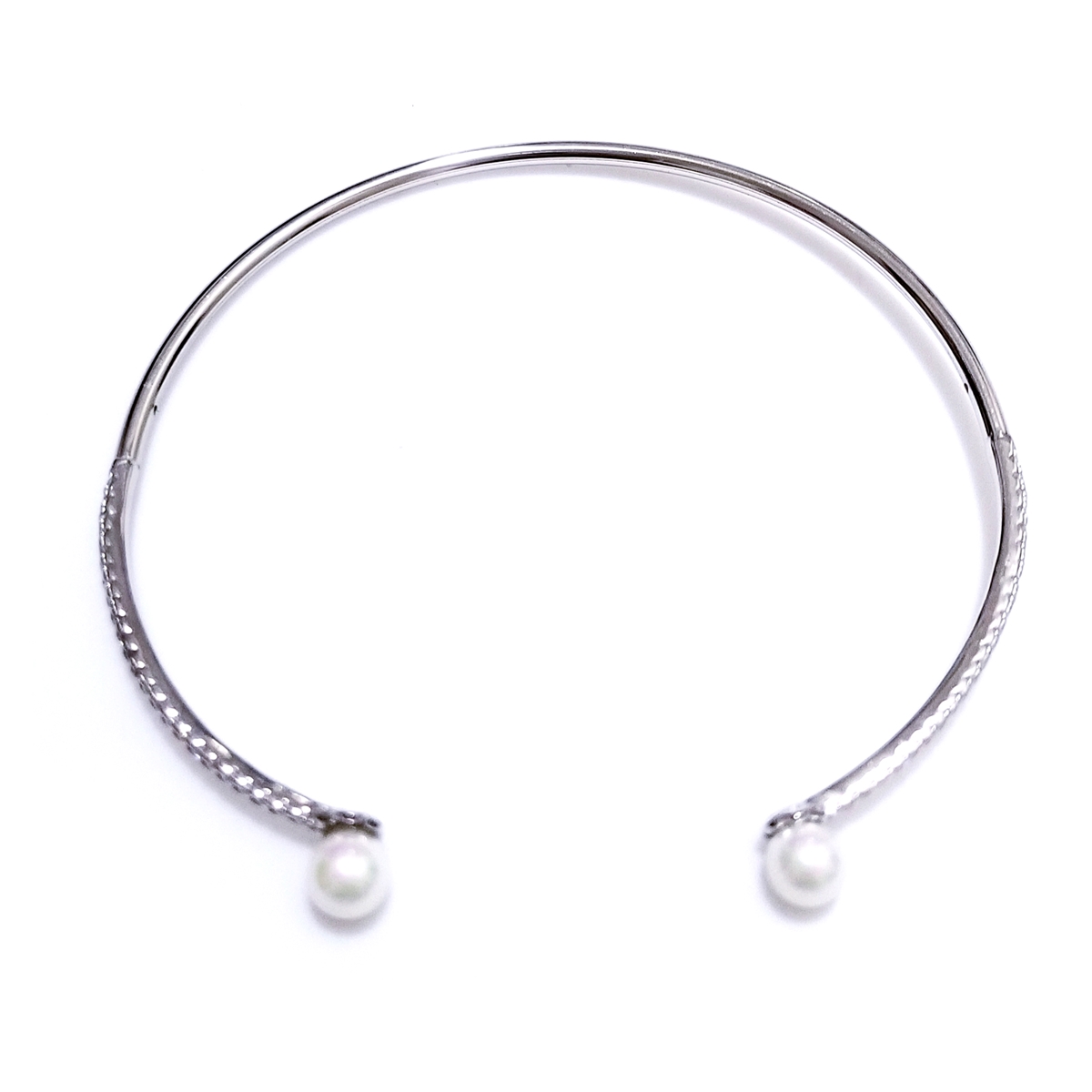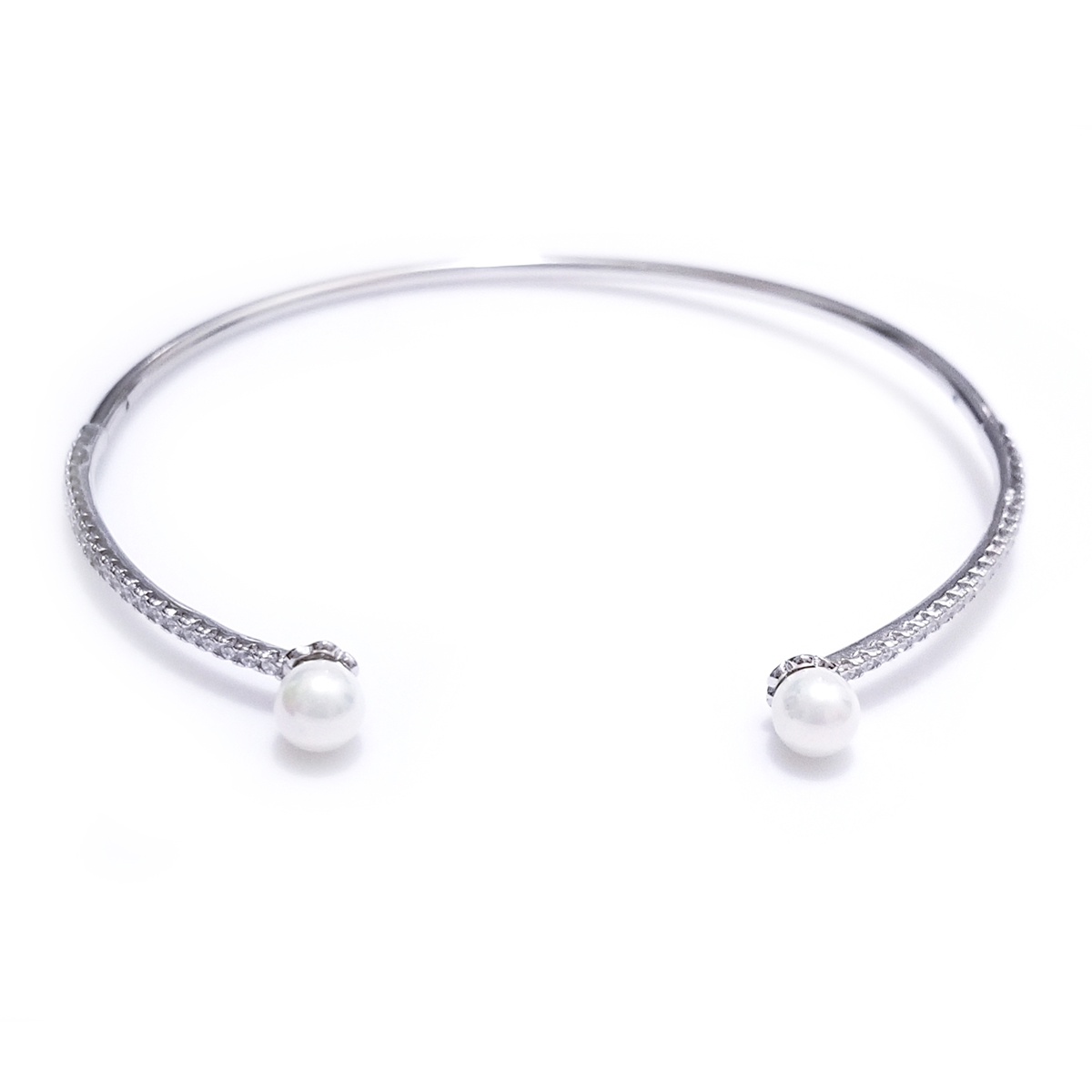 Bracelete regulável confeccionado em prata com pérolas naturais e cravação de zircônias