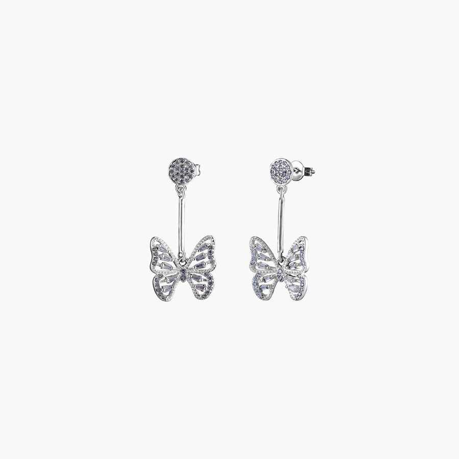 Brinco Borboleta confeccionado em prata, com aplicações de zircônia.