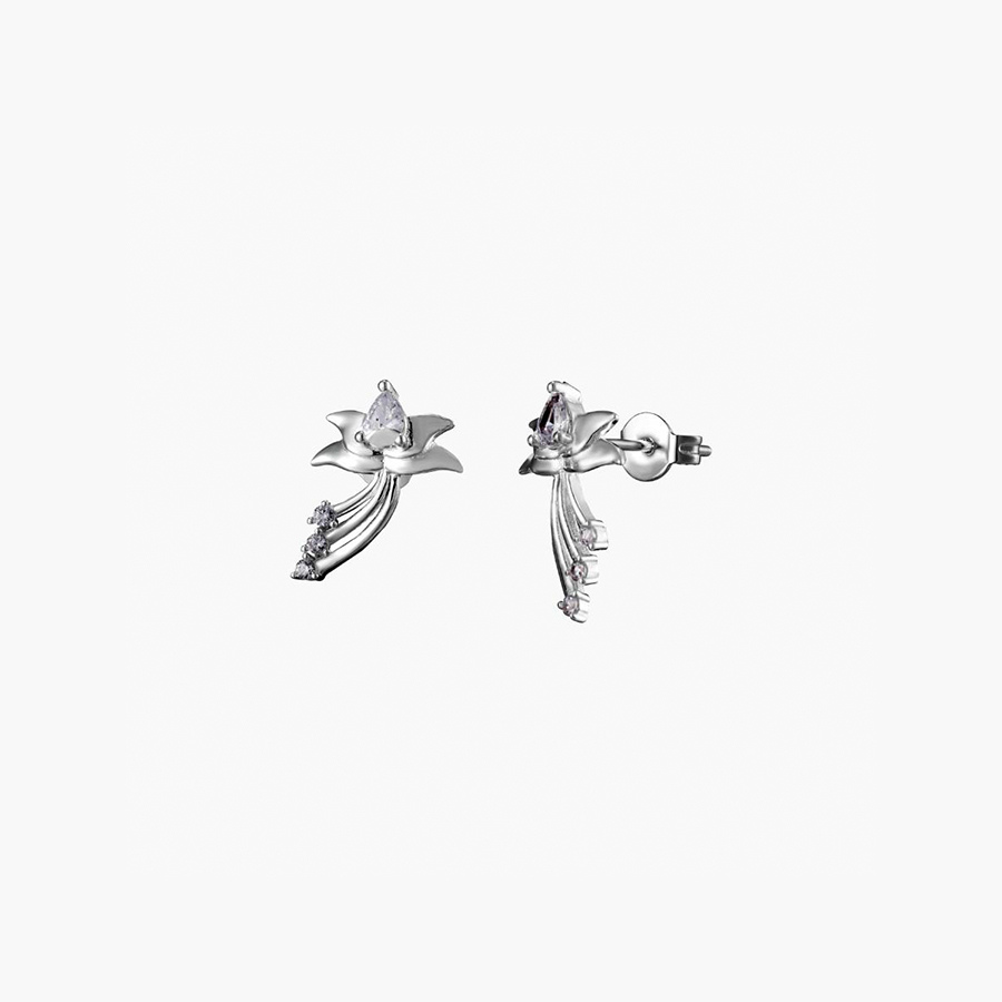 Brinco Flor confeccionado em prata, com aplicações de zircônia.