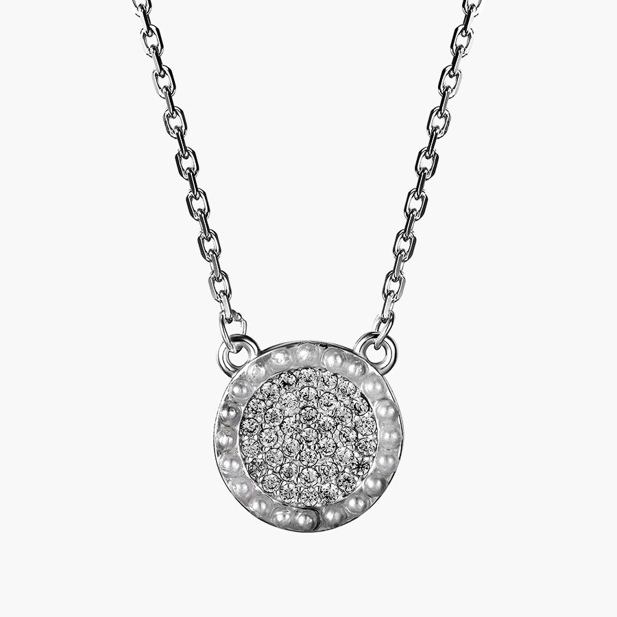 Colar Redondo confeccionado em prata com aplicações de zircônia e pérola.Material: Prata.Pedra: Zircônia branca.