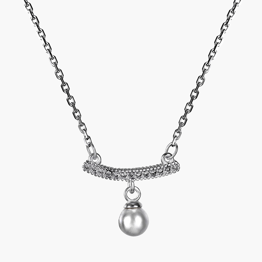 Colar Taco com Pérola pendurada, confeccioando em prata com aplicações de zircônia. Material: Prata. Pedra: Zircônia branca.