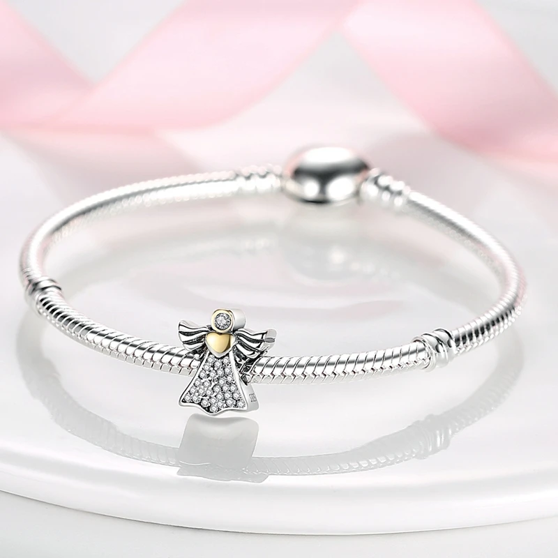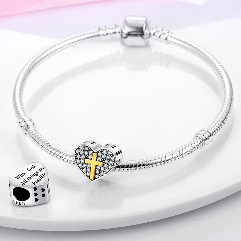 Fé brasil cruz de anjo virgem 925 asas de prata contas de igreja charme ajuste original pulseira colar pingente mulheres fazendo jóias
