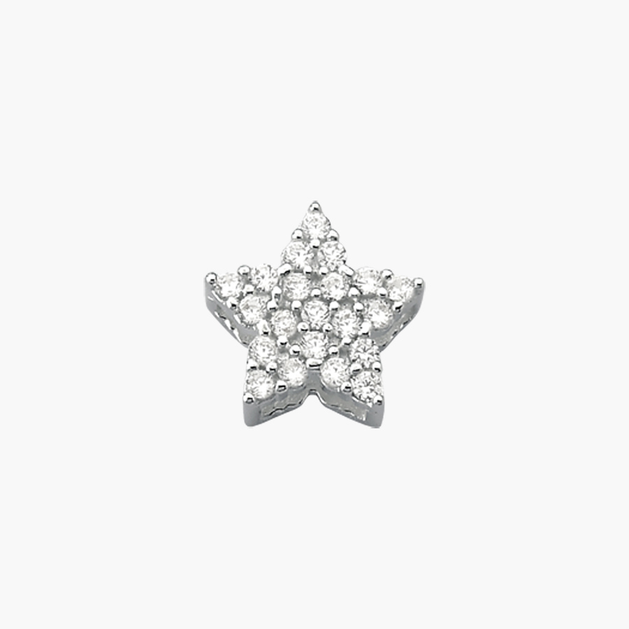 Pingente Estrela confeccionado em prata, com aplicações de zircônia.